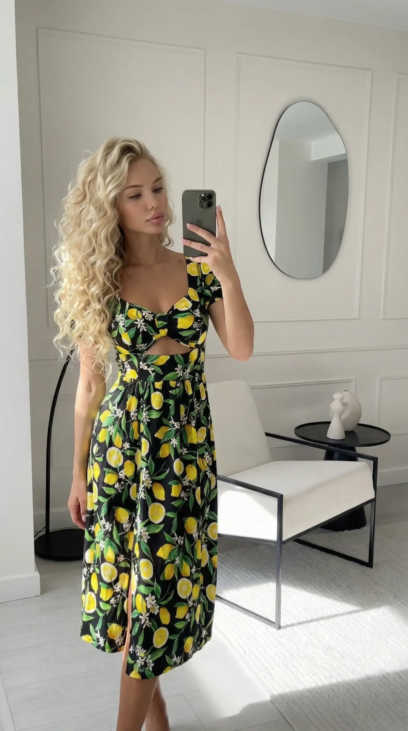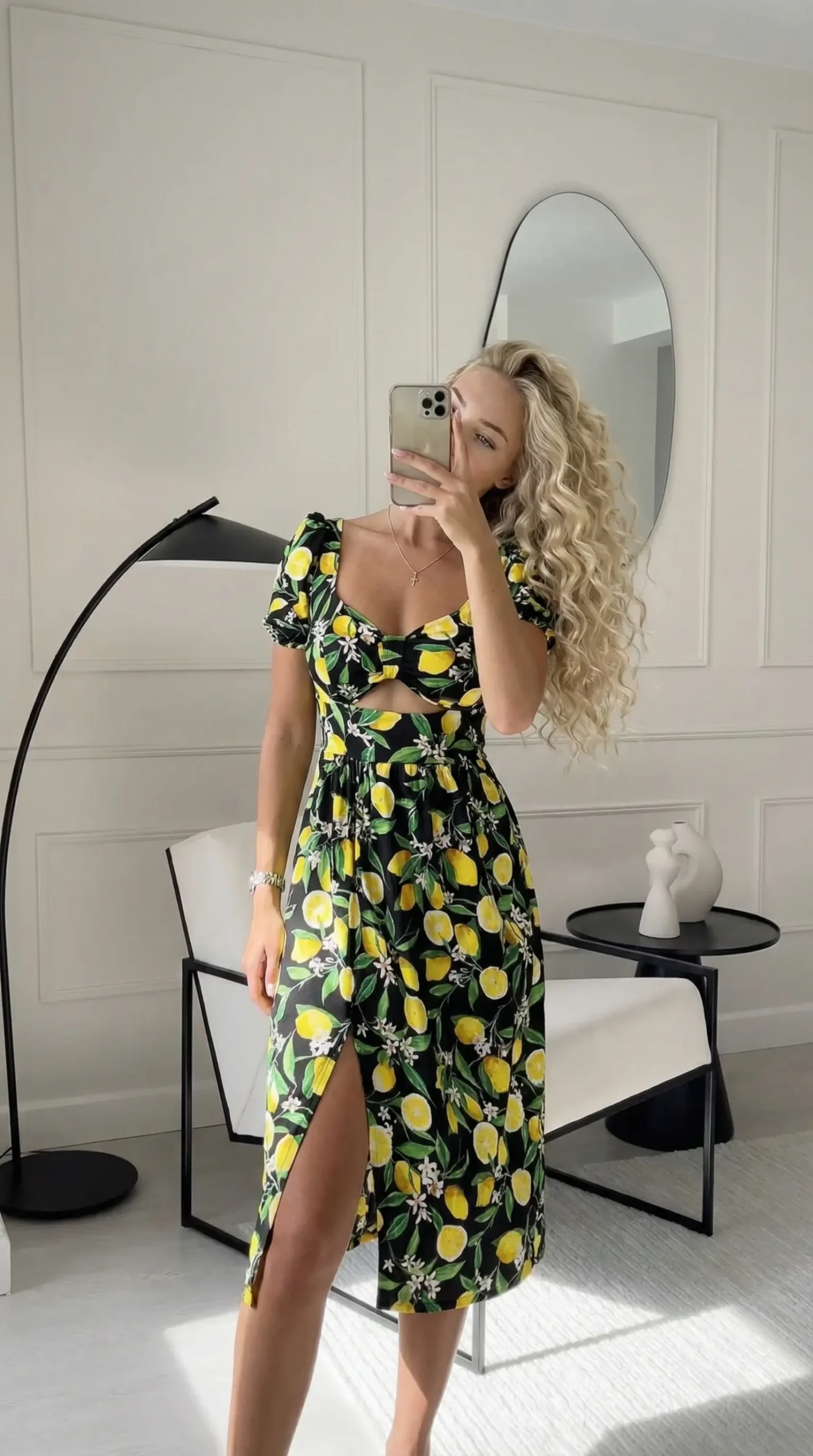 Stilingos ir elegantiškos vasarinės suknelės, yra tikras mados šedevras, kurios pritrauks dėmesį bet kur. Šių suknelių švelnus bei žaismingas audinys su citrinomis suteikia subtilumo ir švelnumo, tuo pačiu metu išsiskiriant iš minios. Suknelė turi gražią V formos iškirptę , kuri gražiai suformuoja krūtinę, kaklą ir peties linijas. Tai suteikia jums subtilią ir moterišką išvaizdą.