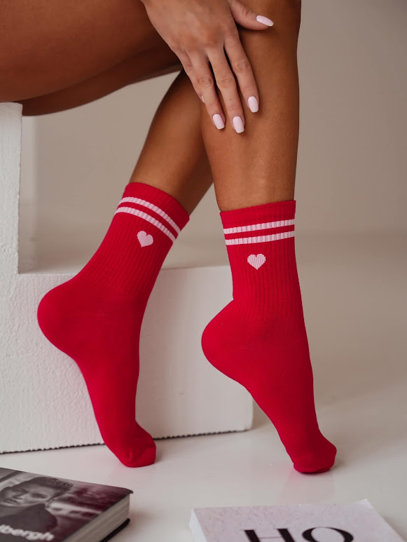 Šios kojinės su dekoratyvine juostele ir širdele puikiai tinka kaip dovana!