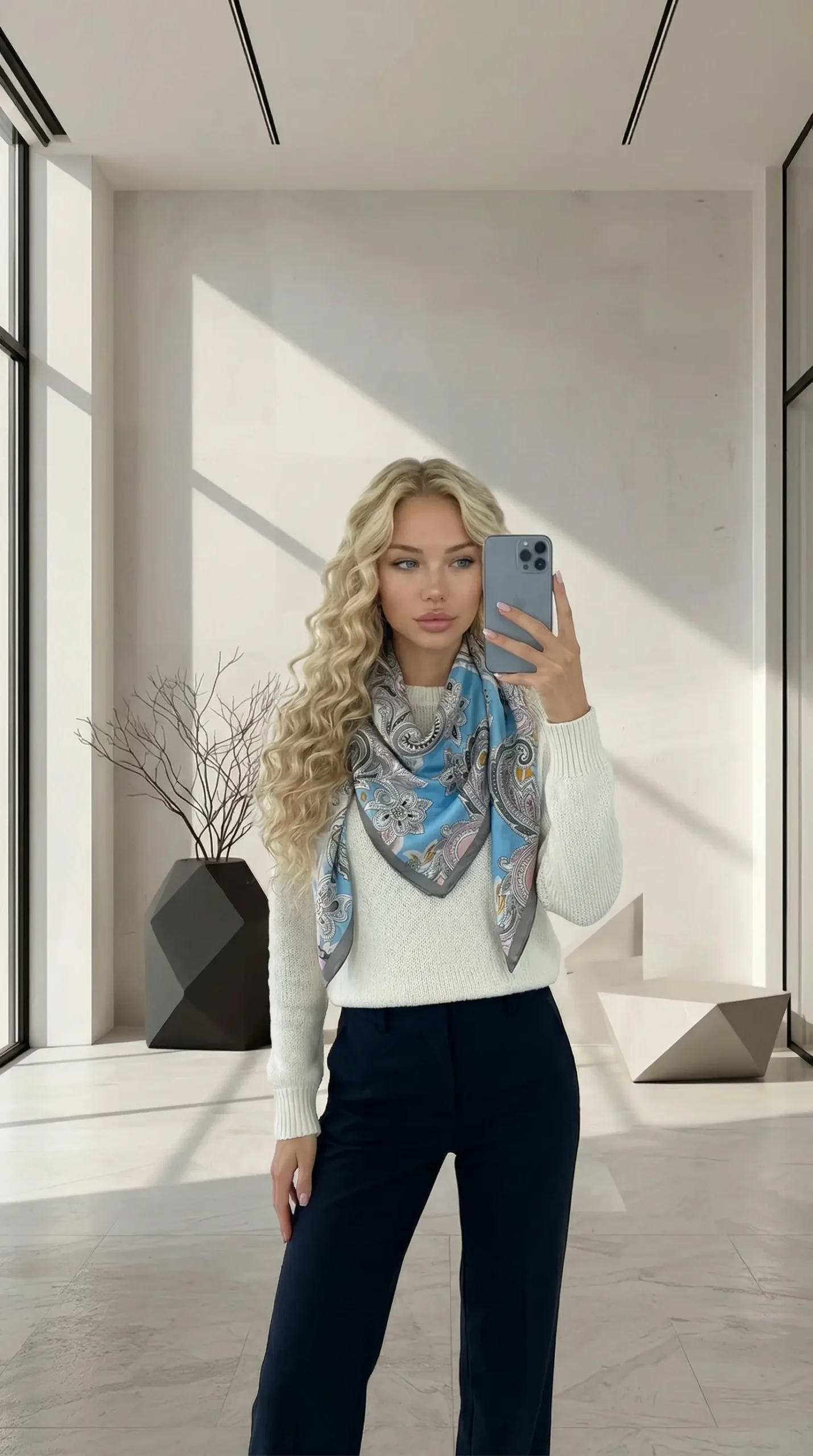 - Vakarienei: dėvėkite šaliką su šviesiu megztiniu ar sijonu, kad jaustumėtės šiltai ir stilingai.