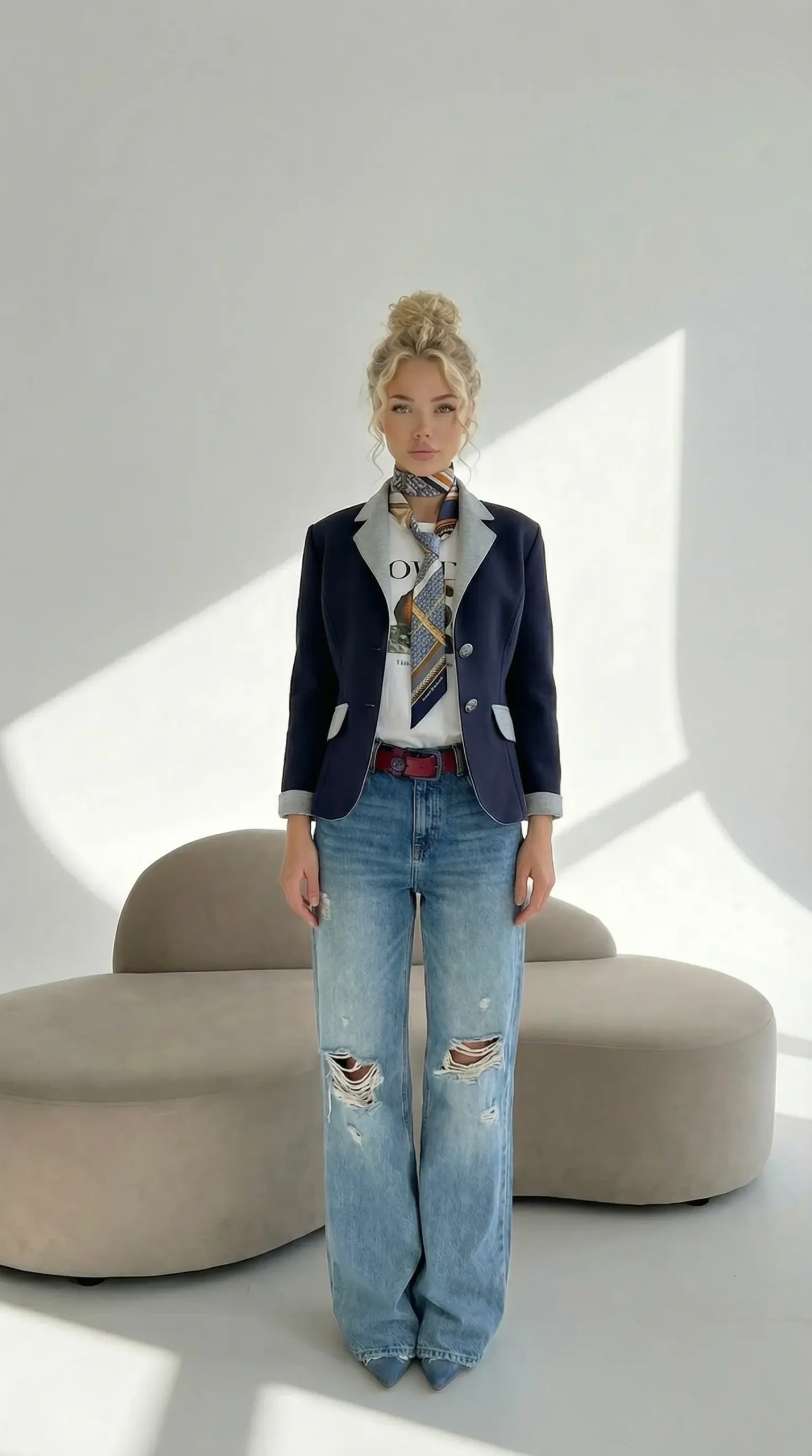 • Su džinsais: Jei norite sukurti neformalų, bet stilingą įvaizdį, galite švarką derinti su džinsais ir marškinėliais.
