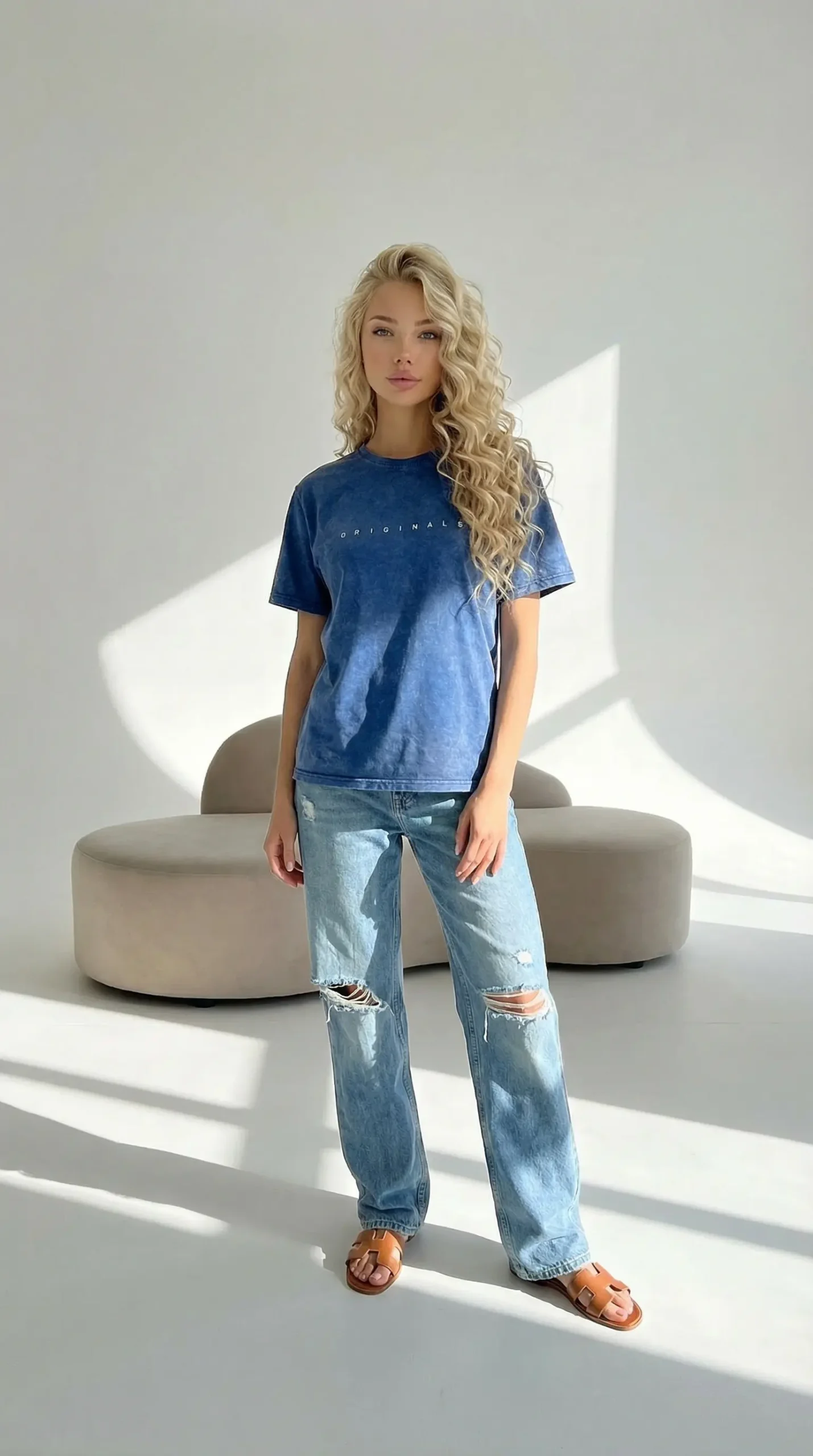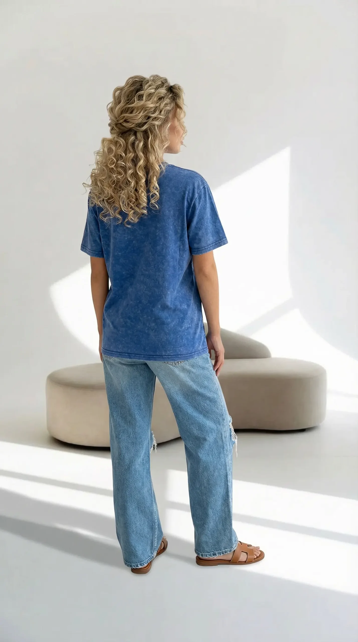 Šias moteriškas maikutes su užrašu išskiria mėlynas šlapio asvalto efektas – kiekvienas drabužis unikalus, tarsi rankomis apdirbtas. Subtilus baltas „ORIGINALS” užrašas krūtinės srityje suteikia minimalistinį akcentą, kuris tinka prie bet kokio įvaizdžio. Jokių ryškių printų, jokio pertekliaus – tik grynas, modernus stilius, kuris niekada neišeina iš mados.