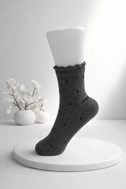 Šios moteriškos medvilnės kojinės moterims – idealus pasirinkimas ieškančioms komforto, elegancijos ir išskirtinumo kasdienėje aprangoje. Sudėtis: 95% medvilnė ir 5% elastanas  užtikrina natūralų pluoštą, kuri yra maloni odai, suteikia patvarumo ir ilgaamžiškumo, o elastanas leidžia kojinėms idealiai priglusti prie kojos, neprarandant formos po daugelio dėvėjimų ar skalbimų.