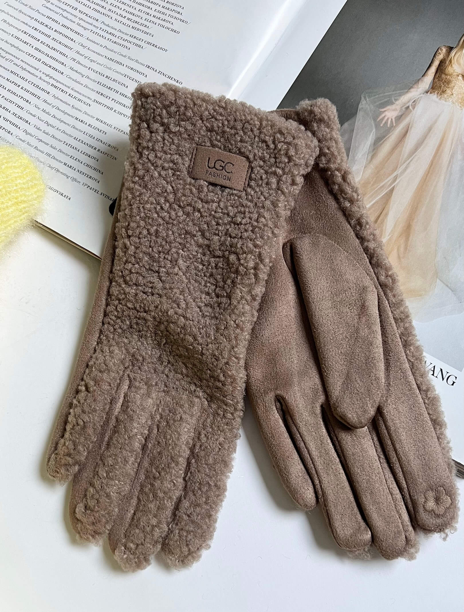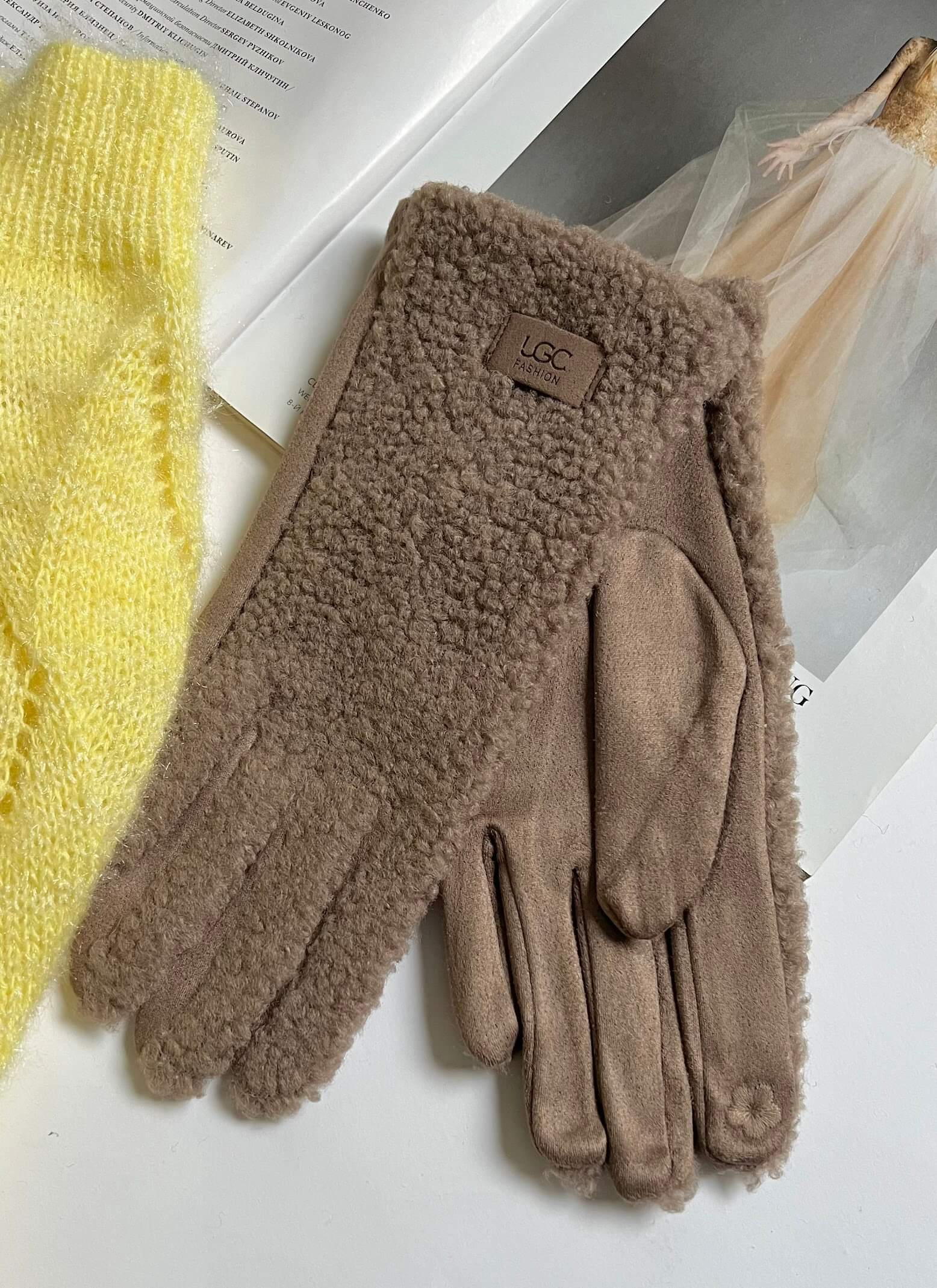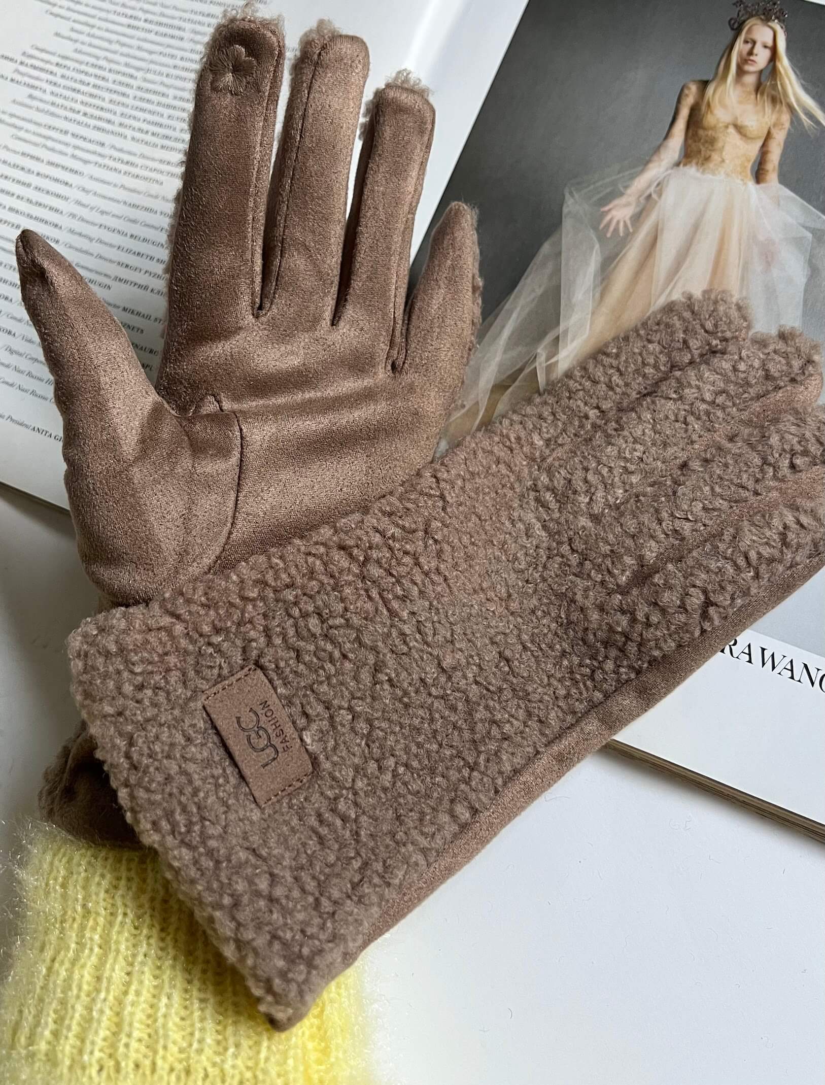 Moteriškos pirštinės UGC su karakuliu Kakavos spalva