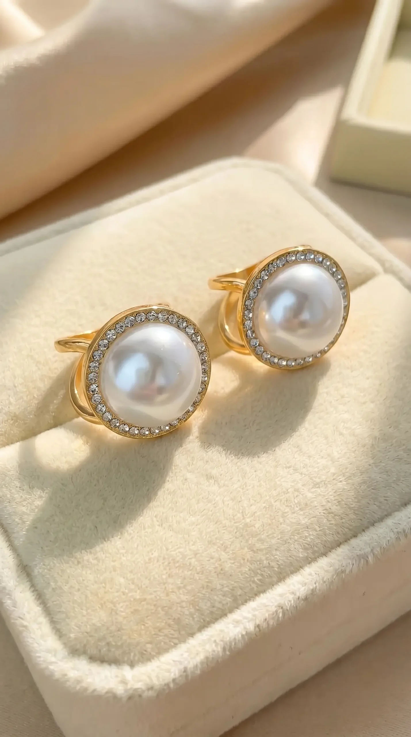 Skarelės žiedas su perlu — tai nedidelė, bet labai efektyvi detalė, kuri paprasto aksesuaro išvaizdą pakelia į kitą lygį. Aukso spalvos metalinis rėmelis, baltas perlas centre ir žėrintis kristalų apvadas sukuria prabangų, bet subtilų efektą.
