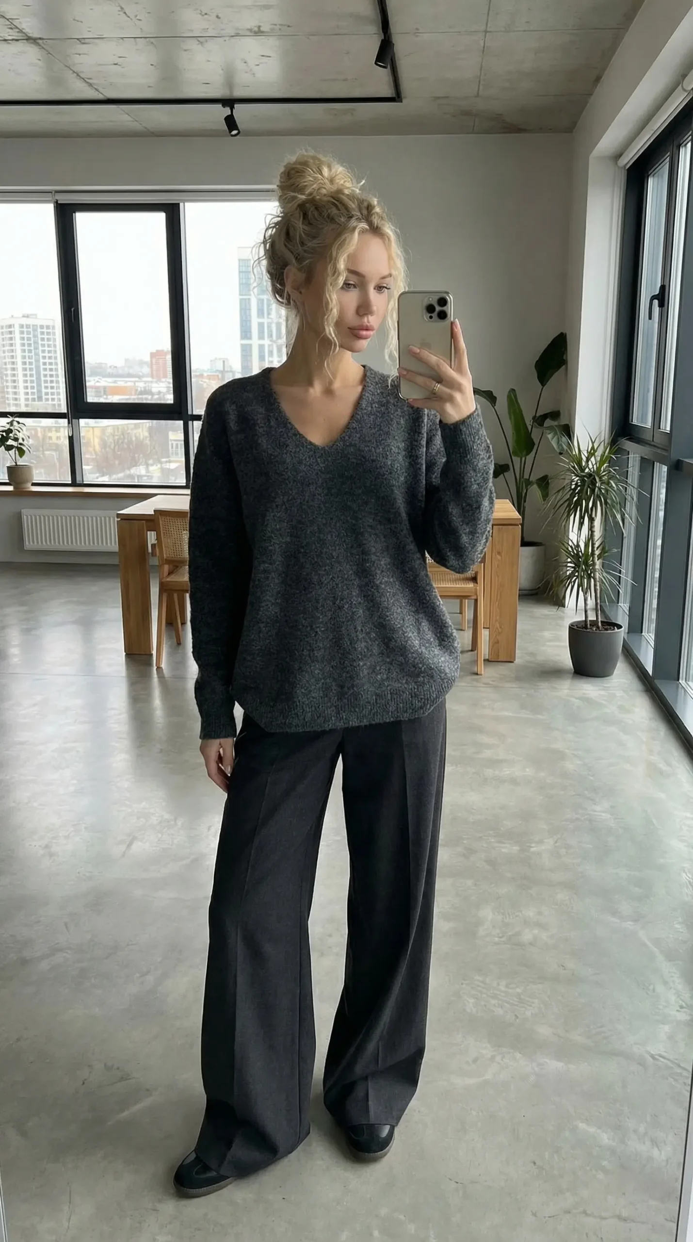 Stilingas megztinis puikiai atrodo su džinsais, klasikinėmis kelnėmis ar sijonais. Pridėkite prie derinio ilgaaulius batus ar sportinio stiliaus avalynę, kad sukurtumėte tobulą aprangą tiek kasdienai, tiek kitai progai.