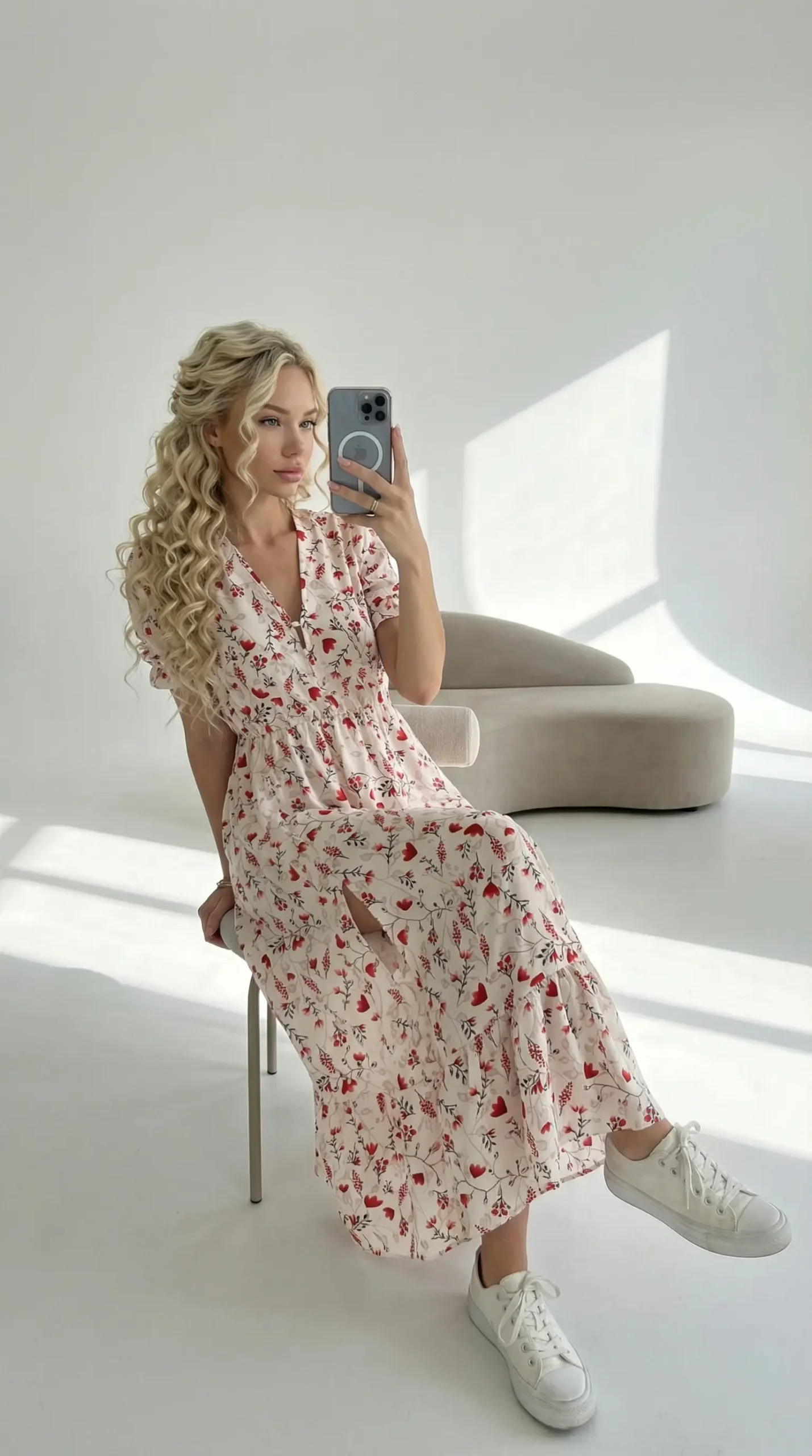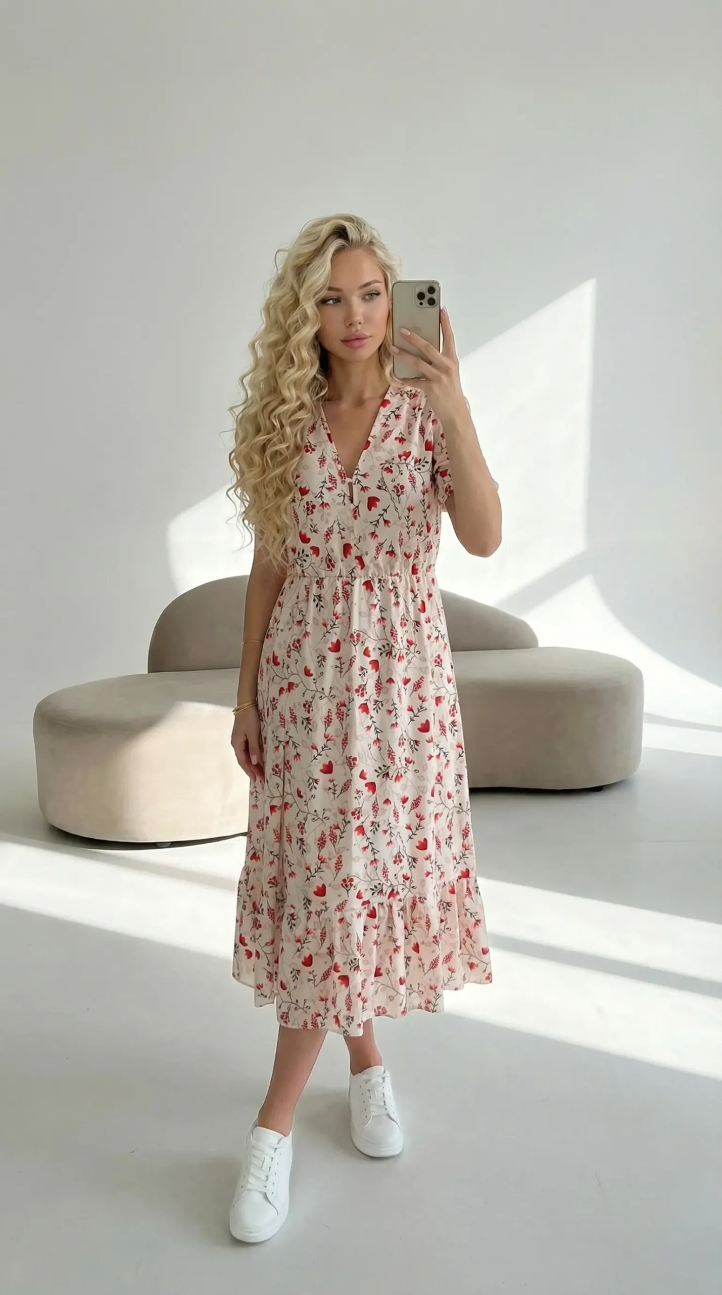 Gėlėti raštai – tai vasaros klasika, kuri niekada neišeina iš mados. Šios suknelės dizainas alsuoja gaivumu ir moteriškumu: rožiniai žiedai, subtiliai išsidėstę ant šviesaus pagrindo, sukuria lengvumo, švaros ir elegancijos įspūdį. Tokie raštai ne tik pabrėžia figūros grakštumą, bet ir įkvepia pozityviam nusiteikimui kiekvieną dieną. Vasaros metu tokia spalvinė gama itin fotogeniška – puikiai atrodo tiek tiesioginėje saulėje, tiek prie natūralaus šešėlio.